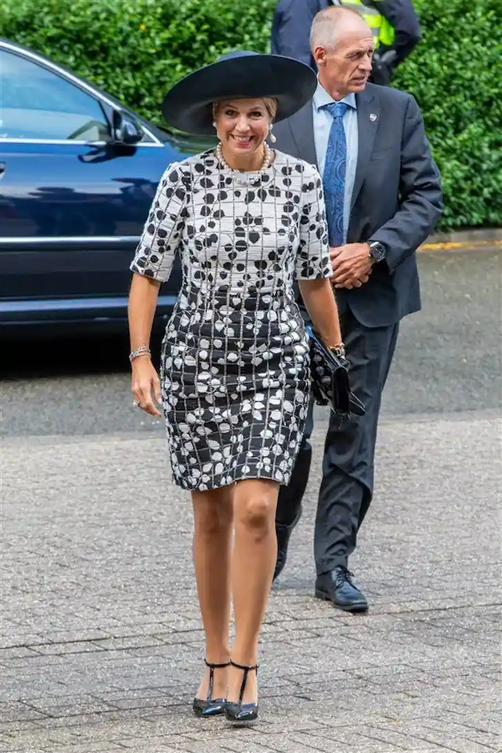 We zien onze koningin vaak in mooie kleuren en betrekkelijk weinig in zwart. Vandaag (donderdag) gooide ze het eens over een heel andere boeg en ging ze full on 101 Dalmatiërs.