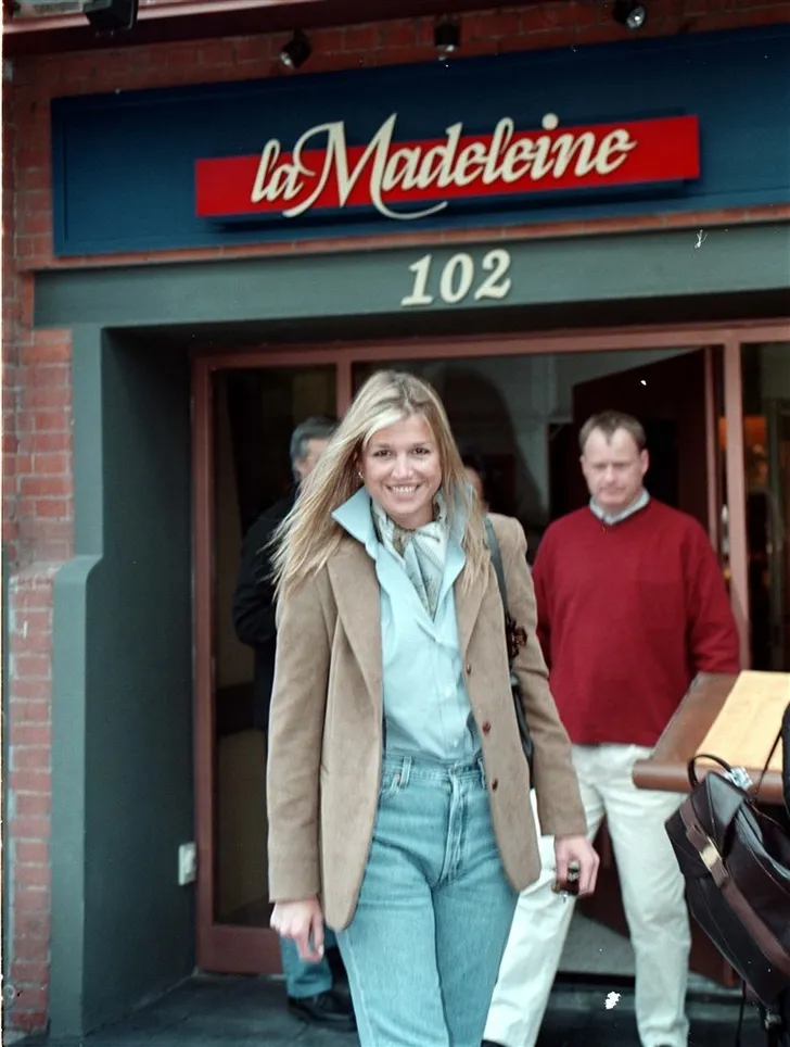 Les 1 van de prinsessenopleiding: 'Niet bewust in de camera kijken, want het gaat niet om jou.' Ze had het voorbeeldig volgehouden vanaf de verloving in januari 2001, maar in april 2001 was ze even in Buenos Aires én even helemaal zichzelf. Na een lunch met vriendinnen ('Ze nam alleen de Popeye-salade en water') was dit zo'n beetje de eerste echte ontspannen Máxima meets Lens foto die er van haar is.