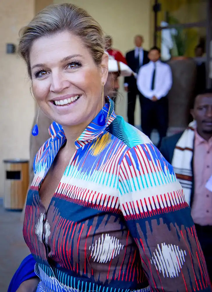 Ethiopië, 2013. Op haar VN-reizen is HM altijd al iets meer ontspannen in haar omgang met de fotografen, maar zelden lukte een fractie-van-een-seconde-pic zo goed als deze, van Robin Utrecht.