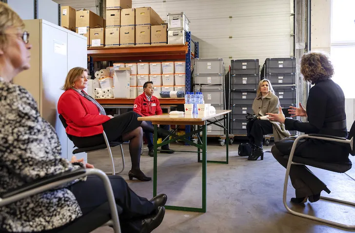 Koningin Máxima brengt een bezoek aan het Rode Kruis om de hulpverleners een hart onder de riem te steken. De hulporganisatie is in Nederland en buitenland dag en nacht in touw om de verspreiding van het #coronavirus tegen te gaan en de getroffenen bij te staan. #COVID19 pic.twitter.com/YqjkF5n4yl