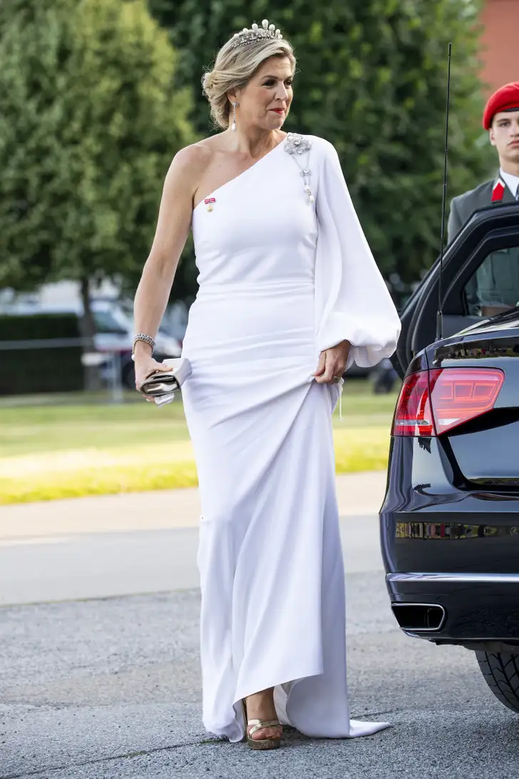 Een tweede hete zomeravond strak in het pak? Geen probleem. Máxima koos een capejurk van Jan Taminiau waar we al jaren over dromen (ze droeg 'm in 2017 voor het eerst)...