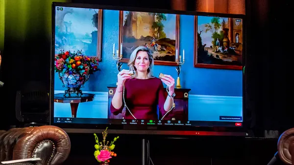 Dat moet nog best even schakelen zijn geweest na haar videocalls eerder vanochtend. Toen was Máxima eerst digitaal aanwezig bij een informatiedag voor werkzoekenden, waarna ze vanuit haar VN-taken een digitale toespraak hield bij het webinar 'Urgent call for agri-food systems transformation to achieve healthy diets for all’. Qua een lekker uiteenlopende werkdag. Ze droeg trouwens een paars pak van Natan voor alle gelegenheden.