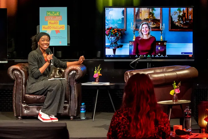 Samen met presentatrice en zangeres Giovanca gaf Majesteit de feestelijke aftrap voor het muziekonderwijs in Noord Noord-Holland. Waarna er een hele rits schoolkinderen optrad.
