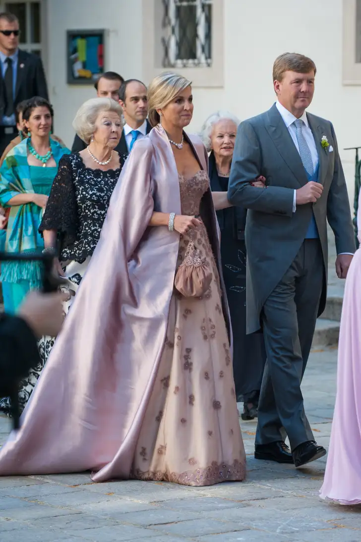 Dat bleken twee oude bekenden, mogen we toch wel zeggen. Allebei van Jan Taminiau. Máxima droeg dezelfde jurk van het label die ze in 2014 ook droeg naar het jawoord van haar broer Juan…