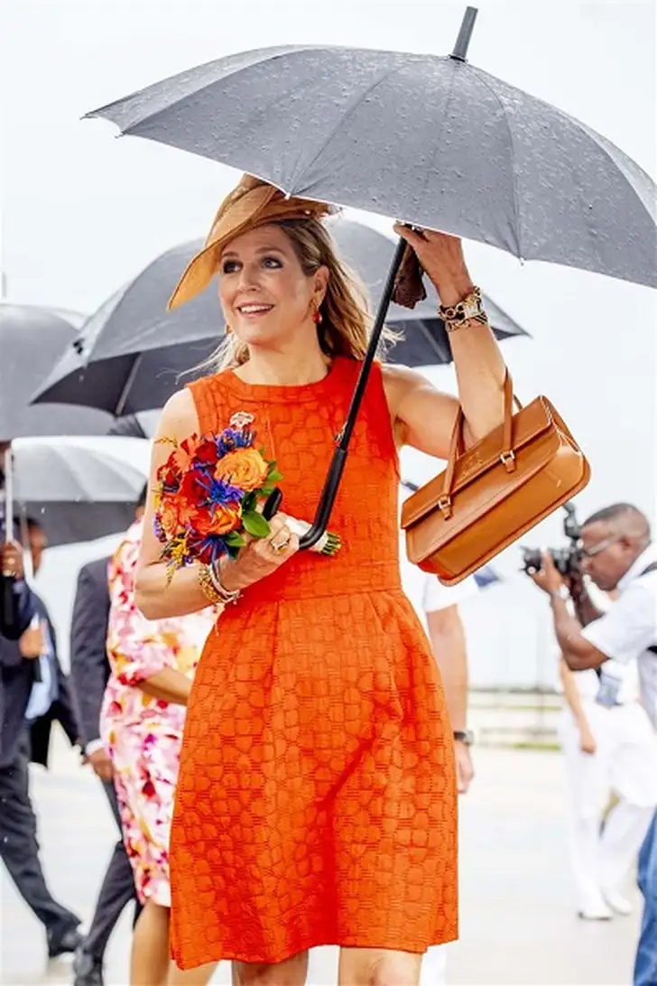 Ondanks de regen zag Máxima er oogverblindend zonnig uit in deze oranje creatie:
