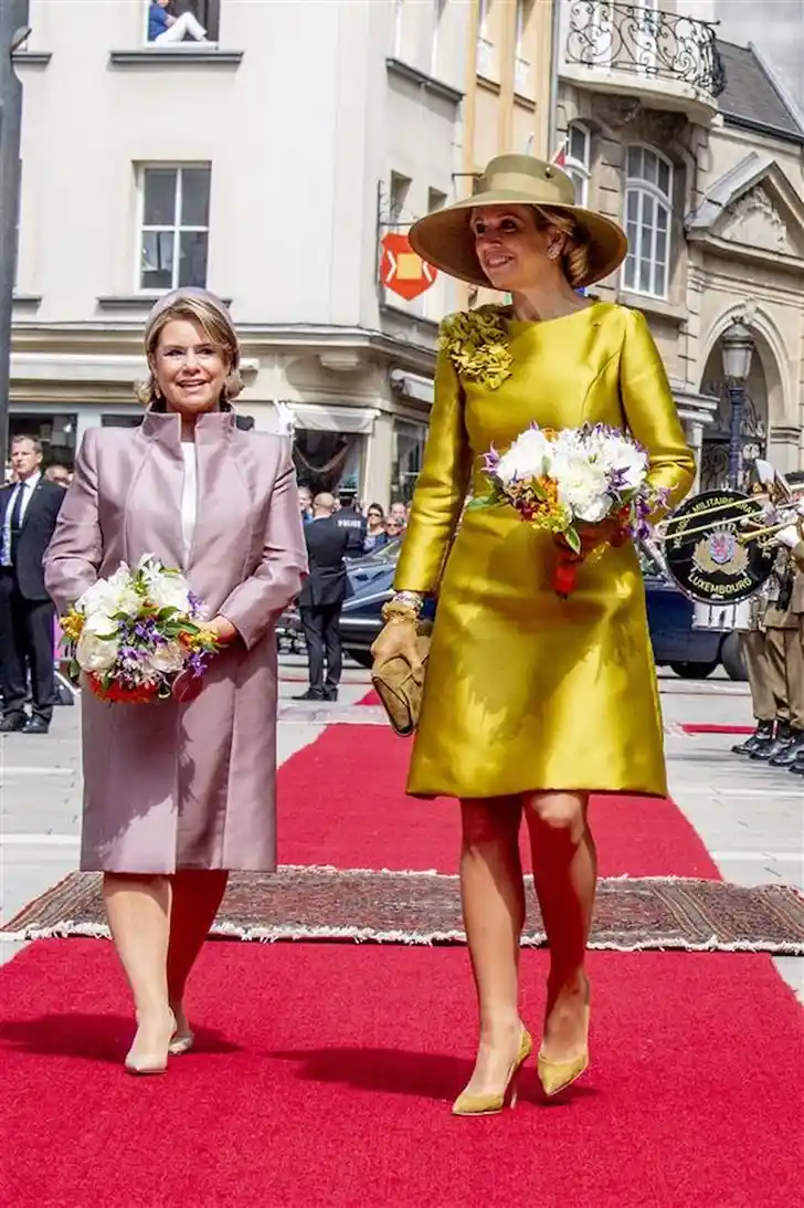 Het programma van de eerste dag in gezelschap van groothertog Henri en groothertogin Maria Teresa is stevig. Na de welkomstceremonie bij het Groothertogelijk Paleis in Luxemburg-Stad leggen Willem-Alexander en Máxima (alweer prachtig in zijde!) een krans bij het nationale oorlogsmuseum.
