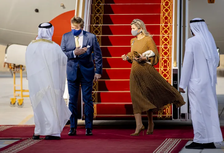 Privé stapt ze op Schiphol vast uit in een fijne Griekse maxi-jurk, maar als Máxima op reis moet als koningin of VN-afgezant, weet ze feilloos mode en vliegtuigstoelbestendigheid met elkaar te combineren. Al blijft deze niet heel fashionable look toch onze grote favoriet hoor.
