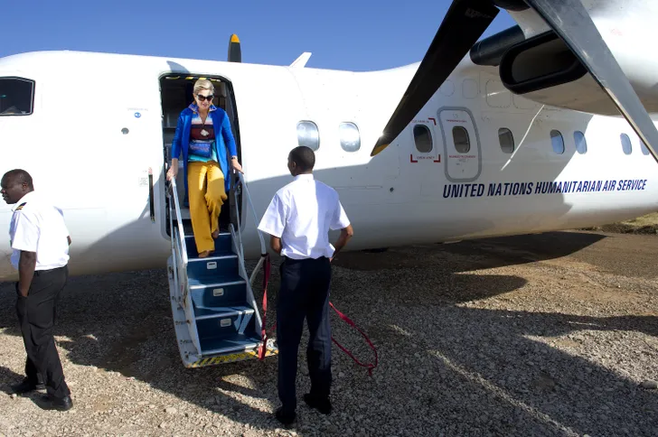 Maar qua échte vliegtuiglooks... wat dacht je van dit glamourmoment bij aankomst in Abu Dhabi, eerder dit jaar...