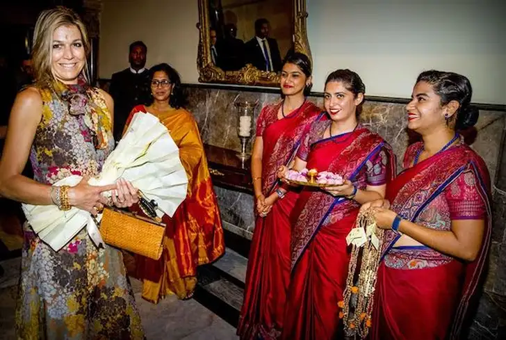 Voor haar trip naar India gooide Máxima haar meest kleurrijke items in haar koffer. Zo ook deze oldie but goodie, die ze al in 2004 voor het eerst droeg.