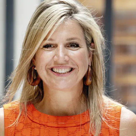 Voor de gelegenheid ging Majesteit op oranje met donkere accessoires. Zomerser dan zomers.