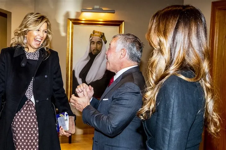 Lachen met oude vrienden, de koning en koningin van Jordanië