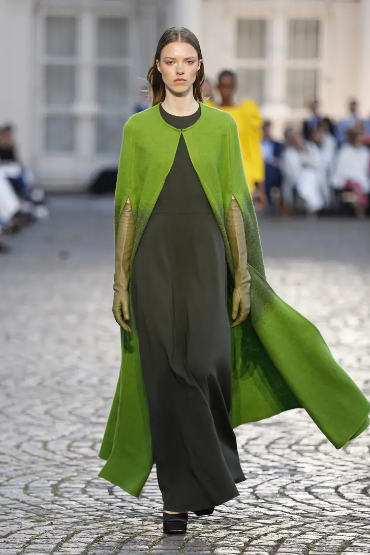 En deze Kermit-groene 'tussencape', ideaal voor als HM haar geliefde Valentino eens een weekje thuis wil laten