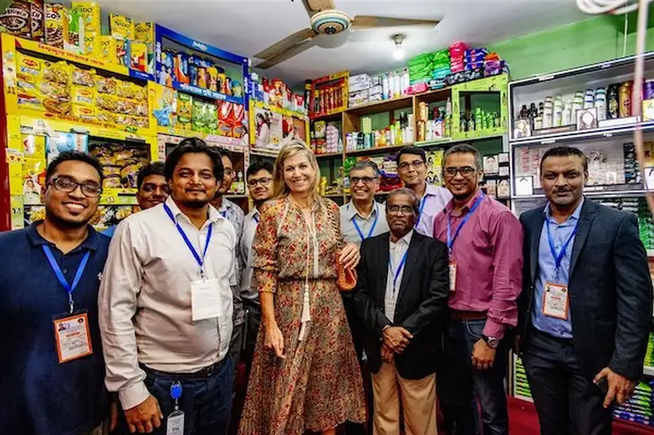 Máxima vloog voor twee drukke dagen naar Bangladesh, waar ze woensdag op bezoek ging bij het lokale VN-kantoor. Daar vergaderde ze met ontwikkelingspartners en vertegenwoordigers uit de financiële sector.