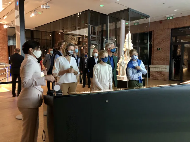 Stéphanie van Luxemburg beschikt over deze exemplaren, iets eleganter en comfortabeler. Bonuspunten voor de minister op de achtergrond, met een kapje met de Luxemburgse vlag.