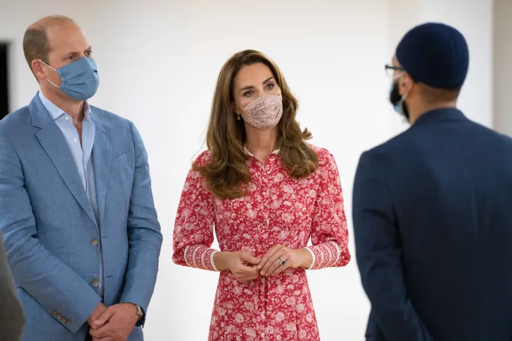 Hertogin Kate is recentelijk gespot met wasbare mondkapjes die bij haar jurk passen.