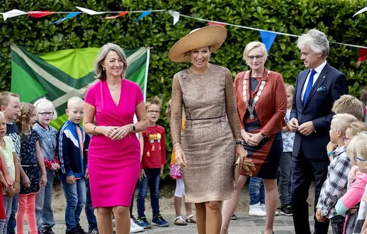 Vol koninklijke pracht (lees: in een Natan, met een hoed én een opvallende broche) ging Máxima vanochtend (woensdag) weer aan het werk. En dat zag er zó uit.