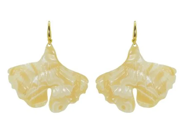 Majesteits favo Nederlandse oorbellenmerk Miccy's maakt deze Ginkgo-beauty's (89 euro)