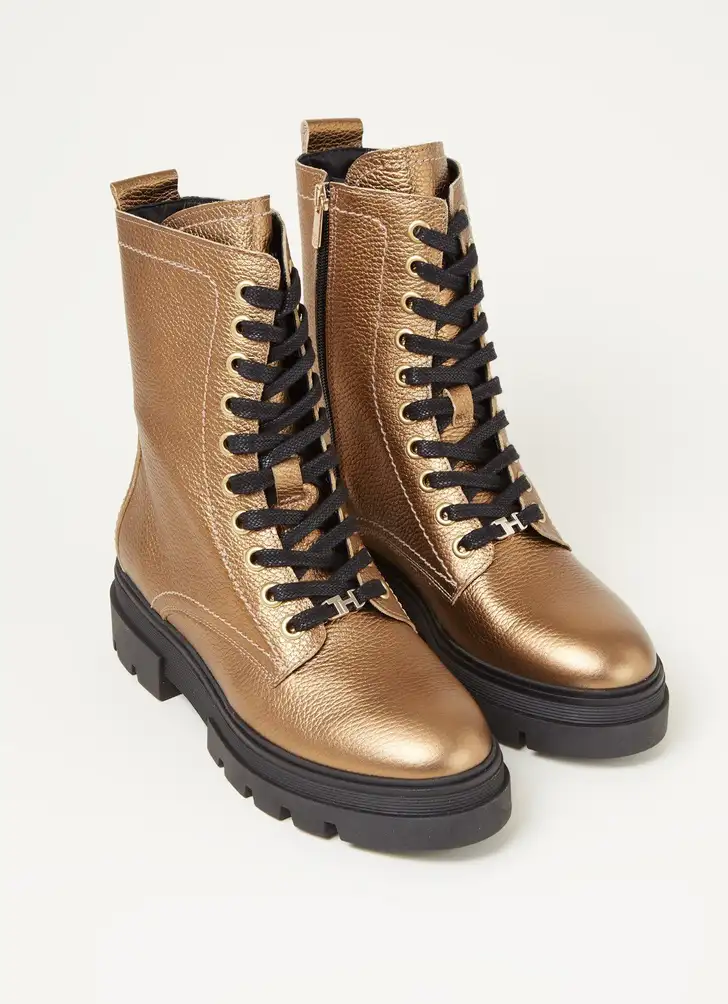 Klassieke bikerlaars in goud van Tommy Hilfiger (Bijenkorf € 180)