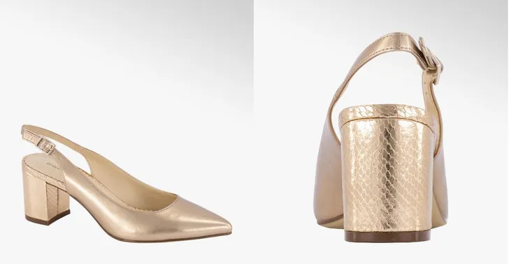 Gouden slingback met een lekkere stevige hak (Van Haren € 25)