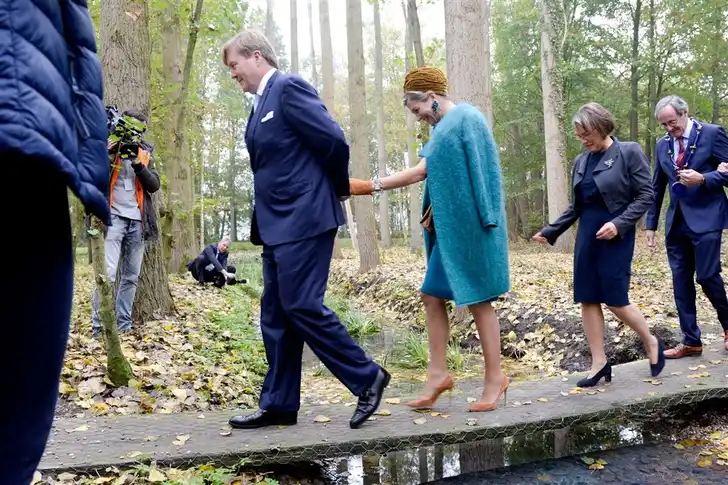 Om deze foto moesten we gniffelen: HM had beeldige, zij het niet erg praktische schoenen aan voor een veldbezoek…