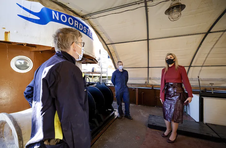 Koningin Máxima ging vandaag op pad naar Scheveningen, waar ze op de Dag van de Ondernemer op bezoek ging bij een scheepsreparatiebedrijf. Op chic, mogen we toch wel zeggen.