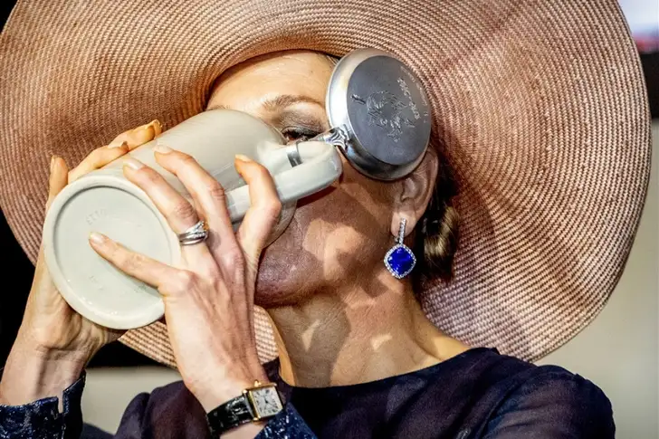 Wat trek je aan voor een jubileumfeest bij een bierbrouwerij? Nou, je meest koninklijke pakkie. Koningin Máxima schitterde na weken vol afwezigheid in royal blue met goud. Bavaria-kleuren, kortom.