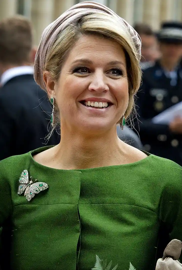 Majesteit heeft namelijk naast deze drie nieuwe beauty's als ode aan haar vaderland ook een Oer-Hollandse favoriet: de broche uit de Stuart-parure, vol diamanten en smaragden die stamt uit de tijd van koningin Emma. Koningin Juliana en koningin Beatrix droegen 'm ooit ook, maar Máxima haalt 'm keer op keer uit de royal sieradenkluis. Soms als broche, en soms als haarsieraad.
