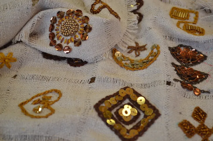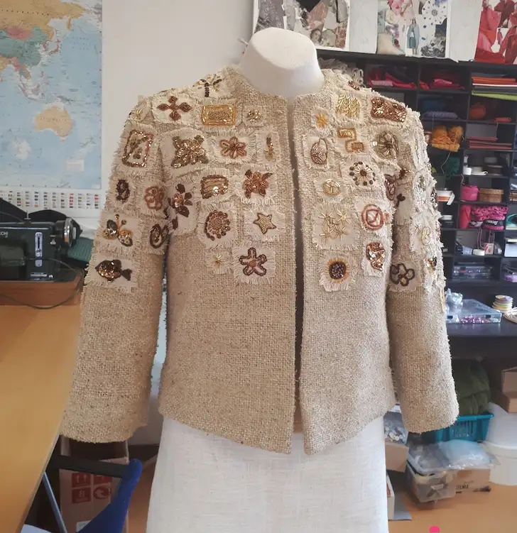 Vier ochtenden in de week komen de vluchtelingen bijeen om te borduren. In totaal werkten ze met zijn vijftienen aan het jasje voor de koningin. Ze dachten goed na over wat voor kleuren Majesteit graag draagt om hun kansen te vergroten. De binnenkant is royal blue, de buitenkant heeft goudtinten. "Een verwijzing naar de verrijking die vluchtelingen zijn voor onze maatschappij", zegt Evelo.