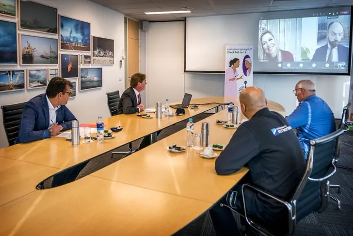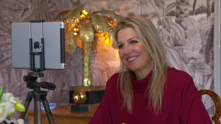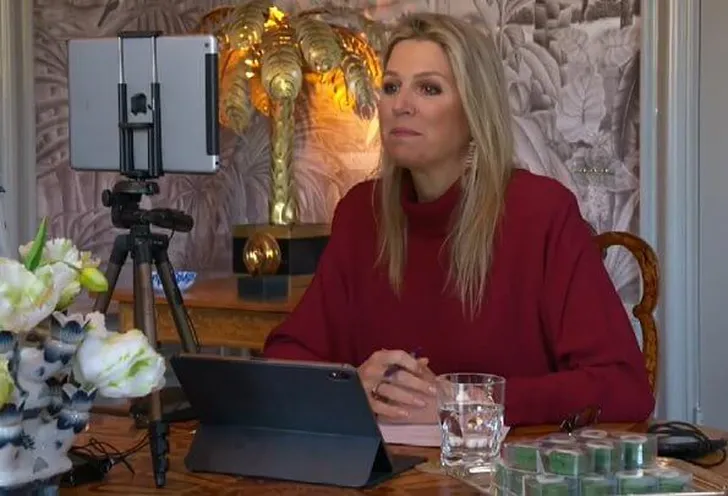 Koningin Máxima had deze week in koninklijk rood een online gesprek met medewerkers en pensioenuitvoerders van containeroverslagbedrijf Hutchison Ports ECT in Rotterdam.