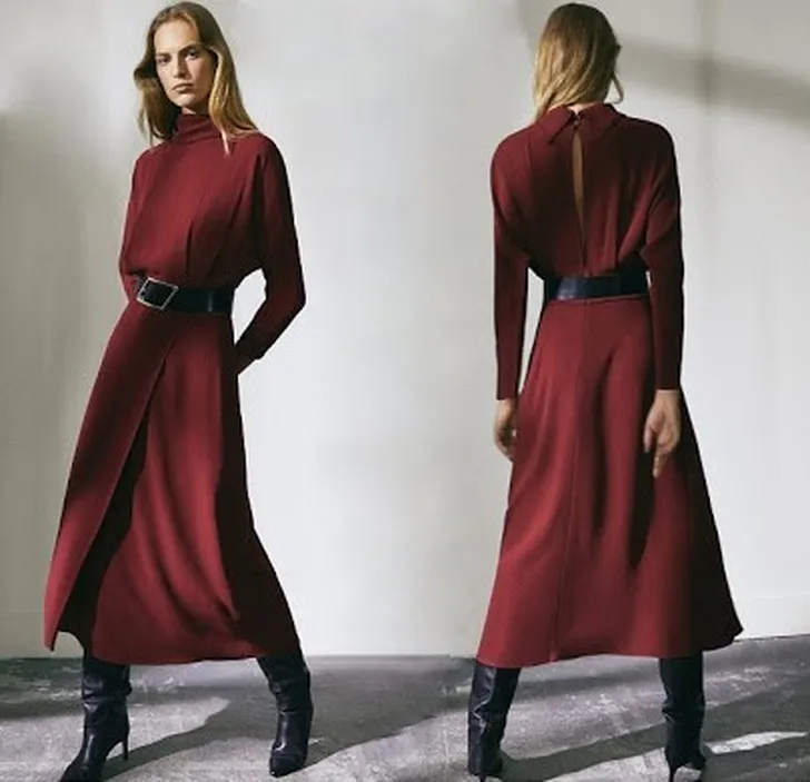 Rood dragen voor een zakelijke meeting, online dan wel live, is slim. De University of Rochester analyseerde meerdere onderzoeken naar het effect van de kleur, waar uit voortkwam dat rood de drager de allure van een machtig en krachtig persoon geeft. Rood hoort wereldwijd bij de regalia van de rich & famous en mensen in rode kleren zijn zelfverzekerder en stralen meer zelfvertrouwen uit. Omdat de verbinding het beeld wat vager maakt, is rood bij een videocall dan ook een prima truc om toch indruk te maken. Wel moet het dan het verzadigde, diepe rood zijn van bijvoorbeeld de Dutti-jurk; felrood kan fluorescerend overkomen en dat is nou net niet fijn om naar te kijken.