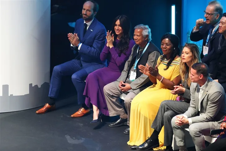 ... maar was lang voor ze Harry leerde kennen al met de organisatie verbonden. Ze sprak in 2014 op een bijeenkomst in Dublin en twee jaar later in Ottowa; premier Justin Trudeau was toen net gekozen.