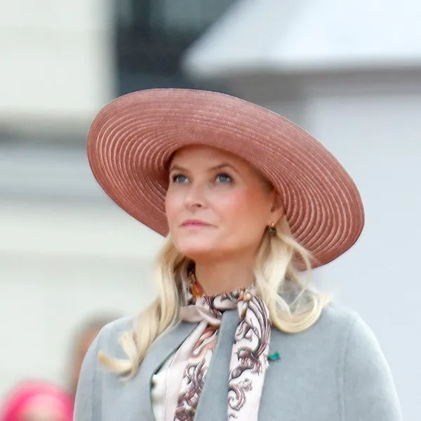 Op de tweede dag ging het er allemaal wat kalmer aan toe. Mette-Marit droeg haar Giuliva Heritage pak met daarover haar jas van Zara. En net als de meeste royals tegenwoordig bleek ook zij (nou ja, haar hofdame, dan) een paar ballerina's paraat te hebben toen er een eind gelopen moest worden. Progress indeed.