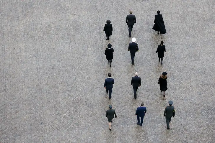 ...droeg de vorstin een gebloemde jurk in blauwtinten. Het signaal mag duidelijk wezen: thuis rouwen we, in het openbaar is het business as usual.