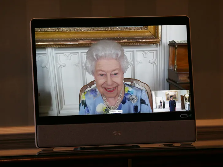 Wie momenteel niet in het zwart gehuld gaat, is koningin Elizabeth. Al bij haar eerste videocall na het overlijden van prins Philip...
