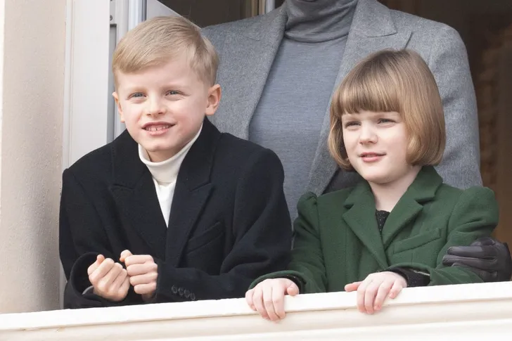 Voor de processie kwamen ook prins Jacques en prinses Gabriella in beeld voor het open raam van het paleis. Zo te zien heeft 'Bella' haar activiteiten als thuiskapper tijdelijk gestaakt.