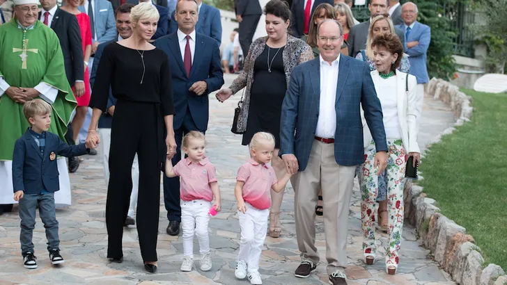 Ook de kinderen van Albert en Charlene, tweeling Jacques en Gabrielle, vielen op met hun zomerse outfitjes. Het prinsje en prinsesje droegen dezelfde roze-wit gestreepte poloshirts, witte spijkerbroekjes en gympen. Zelfs hun haren waren matching. Van zowel het jongetje als het meisje waren de lange blonde krullen naar achter gevlochten.