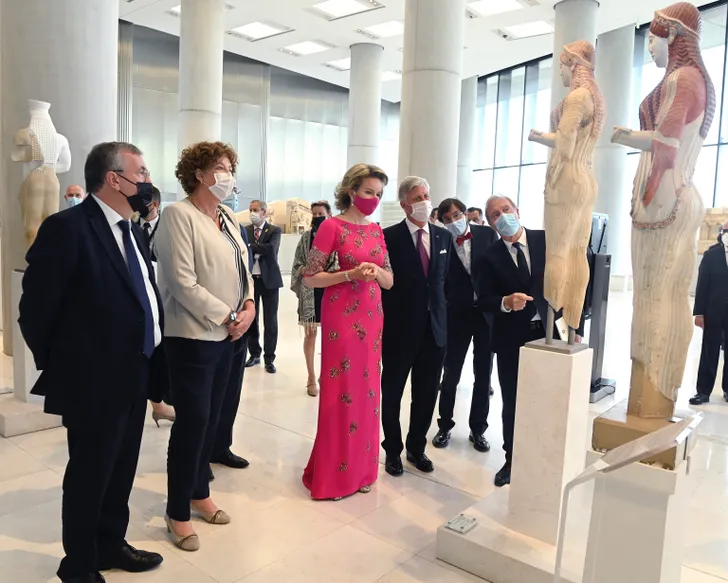 Koningin Mathilde van België gooide vorige week hoge ogen als Diplomatic Dresser met haar mix van Belgische en Griekse ontwerpers. Net als koningin Máxima heeft ze geen stylist en bepaalt zelf wat ze draagt.