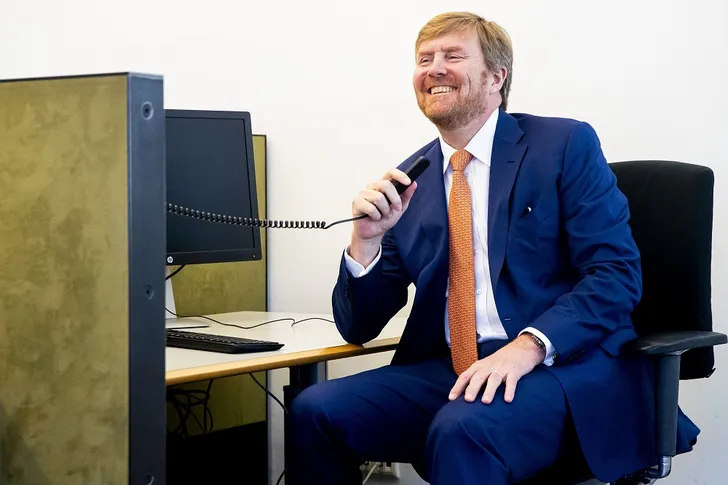 Willem-Alexander sprak er met onder meer de directeur van GGD Hart voor Brabant, Karin van Esch, en enkele medisch deskundigen over de aanpak. Daarnaast bezocht hij het Klant Contact Centrum (KCC) van de GGD waar mensen naartoe bellen met vragen over het coronavirus. En hij had ook nog een kringgesprek met GGD'ers, vertegenwoordigers van de brandweer en wat bestuurders. Of de anderhalve meter afstand hier echt is gehandhaafd? Misschien is het een héél lange tafel?