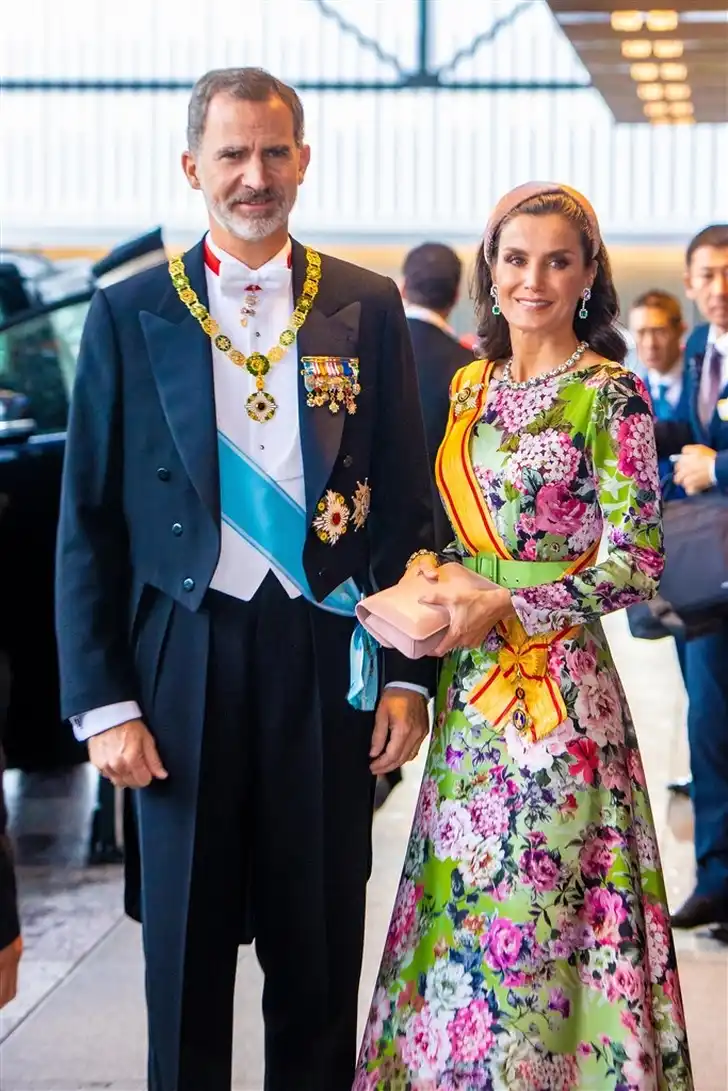 Letizia kreeg bonuspunten voor Diplomatic Dressing: ze had kans gezien een jurk met chrysanten te vinden, als knipoog naar de Chrysantentroon.
