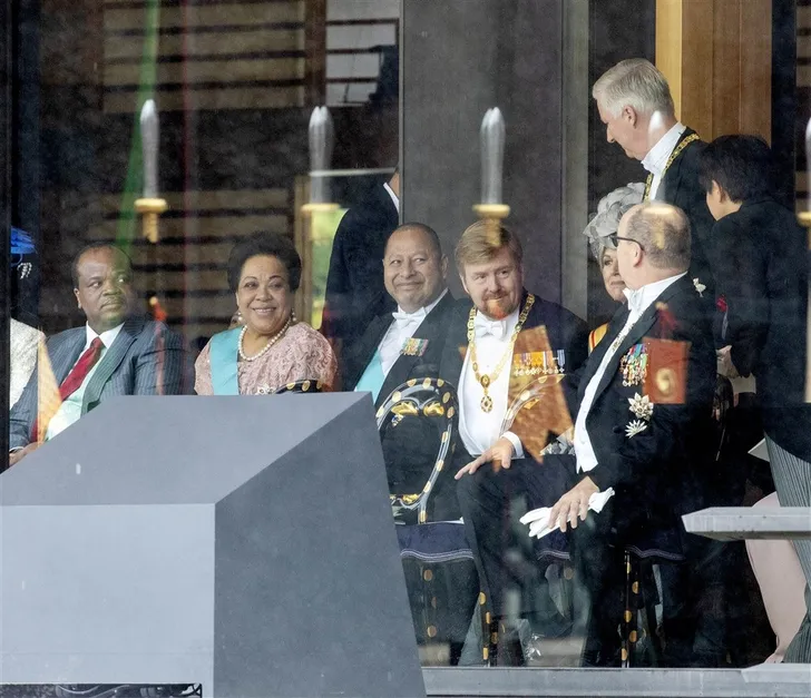 Het is een heel eind vliegen voor een ceremonie van een half uur, maar koning Willem-Alexander en koningin Máxima onderhouden warme contacten met de Japanse royals, dus hadden ze het er voor over. Net als veel andere Europese royals: de orde-dichtheid was enorm.