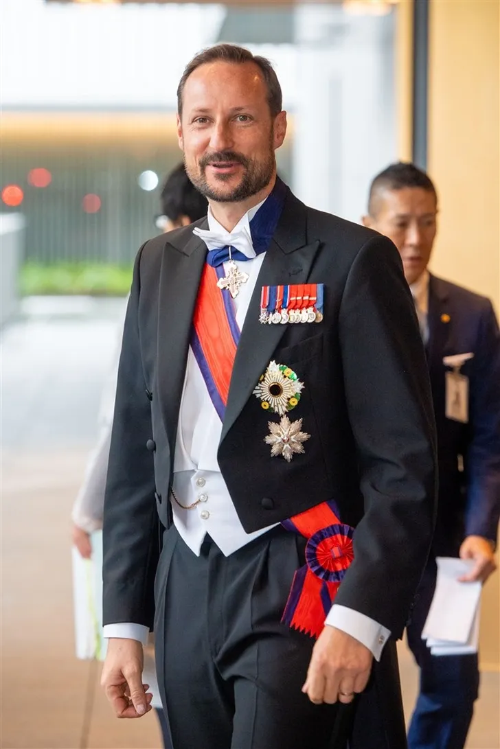 Kroonprins Haakon van Noorwegen was alleen naar Tokio gekomen.