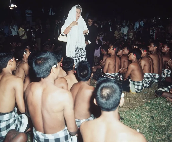 Bali, 1971 – midden in een groep die de rituele kecak (apendans) uitvoert.