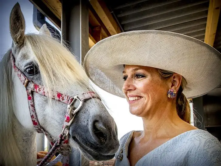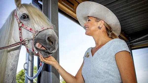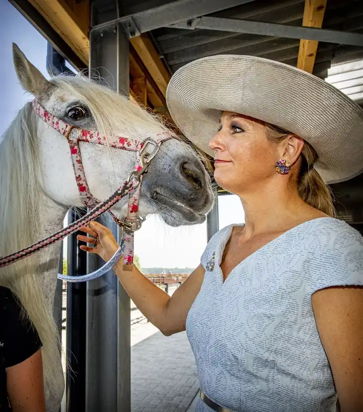 Toen de koningin gisteren (dinsdag) op bezoek ging bij manege No Limits in Noordwijk (waar therapeutische paardrijlessen worden aangeboden), bleek ook een van de paarden daar he-le-maal dol op Máxima.