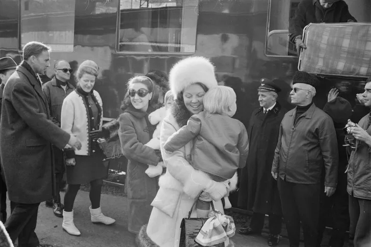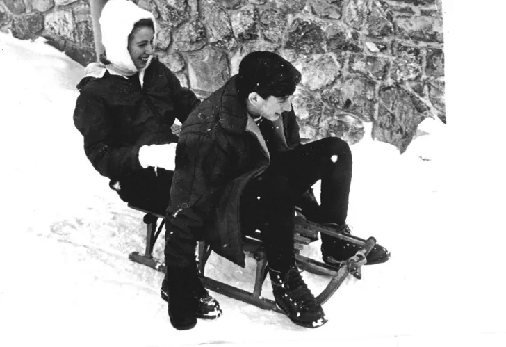 Prinses Anne en kroonprins Charles, dikke pret in Klosters in 1965.