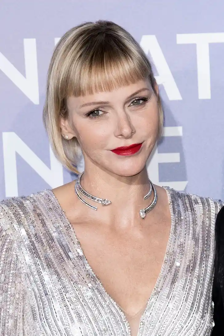 Prinses Charlene is nog altijd blij met haar nieuwe boblijn en haar korte Amélie-pony. Voor het Monte-Carlo Gala For Planetary Health combineerde ze die twee met kick-ass rode lipstick…