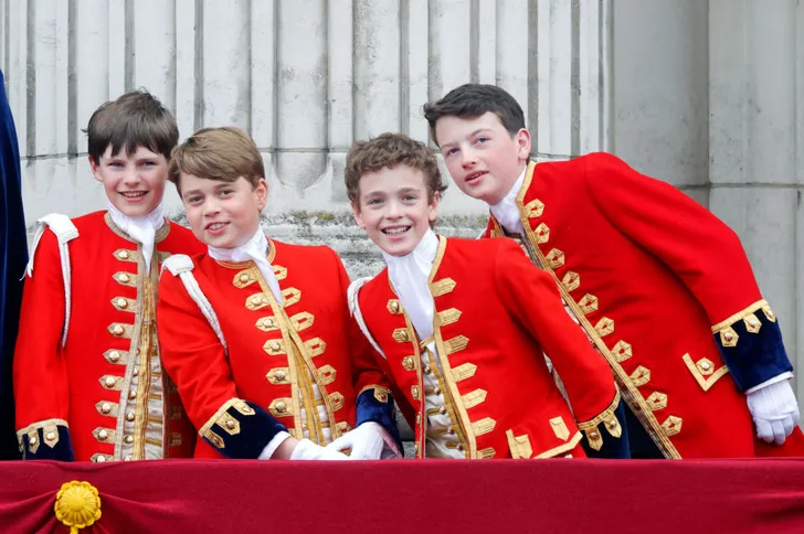 David is Lord in Waiting van koning Charles III, zijn zoontje Lord Oliver Cholmondeley (tweede van rechts) is een vriend van prins George, ze waren samen pages tijdens de kroning.