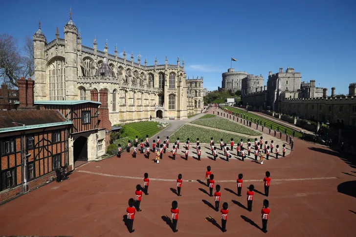 Regiments with a special relationship to The Duke of Edinburgh form up in the Quadrangle at Windsor Castle.