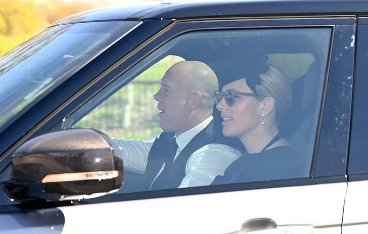 ...en Zara Tindall, als dochter van prinses Anne ook een kleindochter van Philip, liet zich door haar man Mike naar de uitvaart rijden.