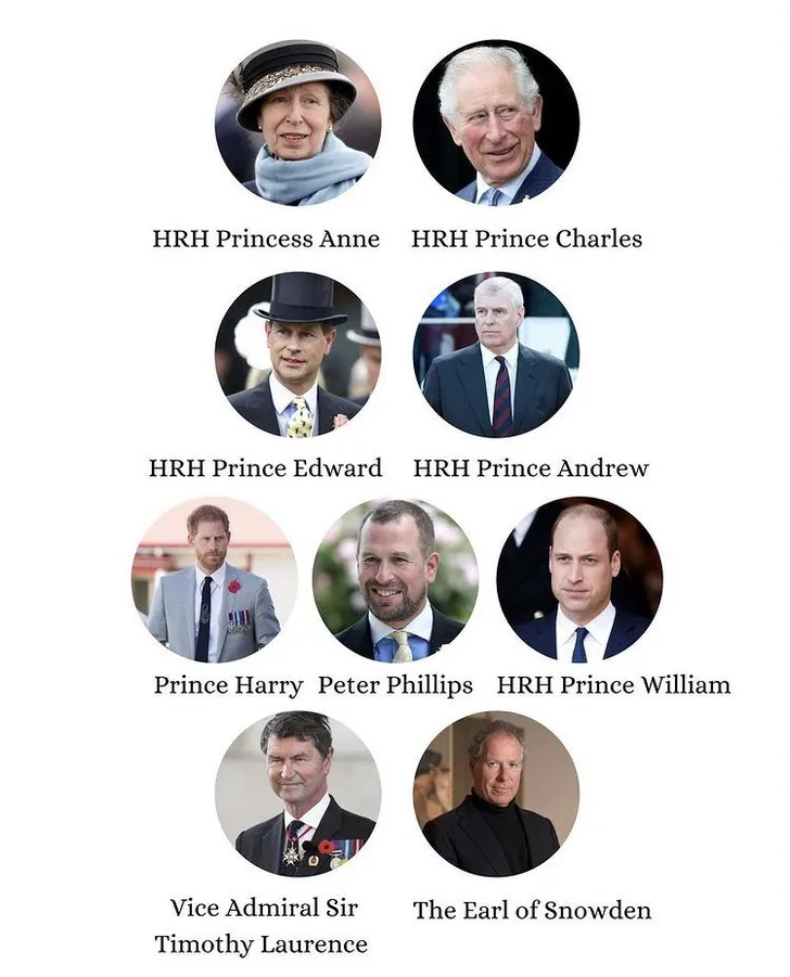 Achter de Land Rover liepen zoals gezegd onder andere de kinderen en kleinkinderen van de prins. Om ophef te voorkomen liep oudste kleinzoon Peter Phillips (de zoon van prinses Anne) tussen de gebrouilleerde prins William en prins Harry in...