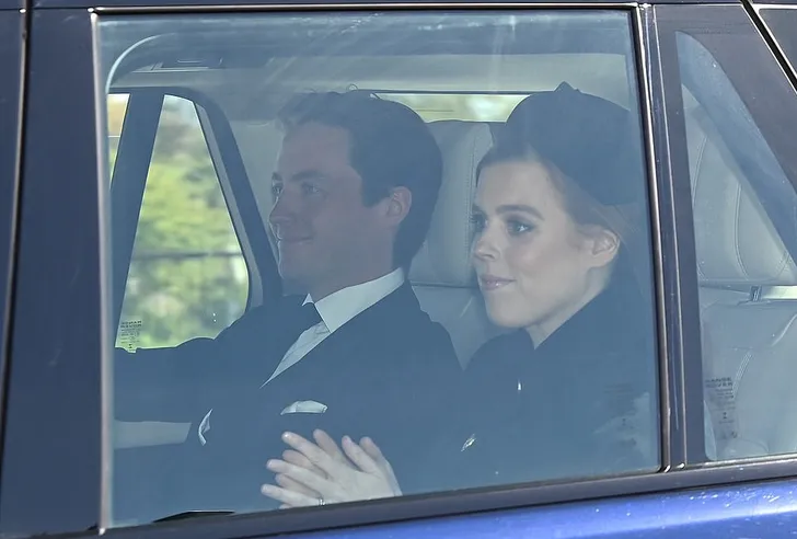 Prinses Beatrice, kleindochter van prins Philip, arriveerde met haar man, Edoardo Mapelli Mozzi...